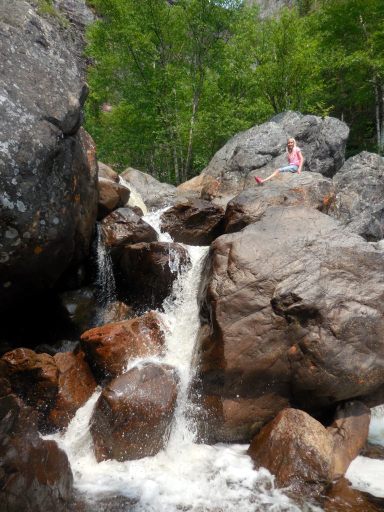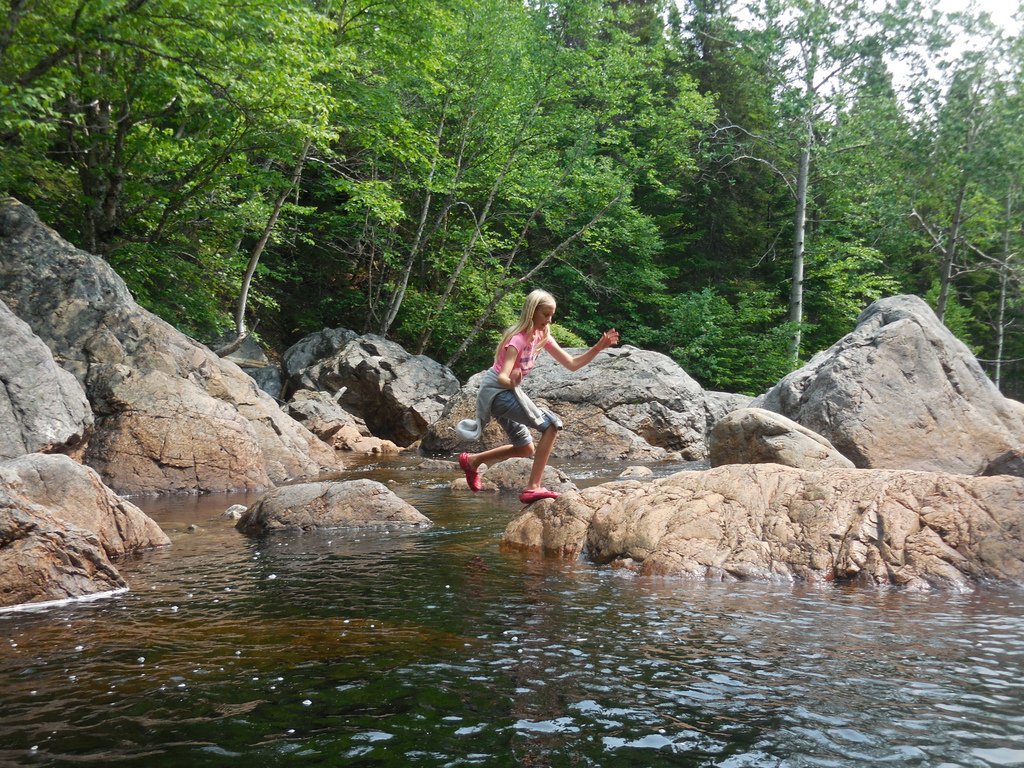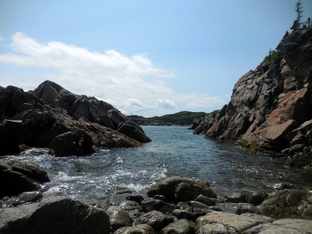 We stayed at Dildo Run Provincial Park and drove down Bowl-Me-Down and Stuckless Lane. I think Newfoundland has the strangest place names ever! But despite the odd names, these places were beautiful. There were endless towering cliffs with seaweed covered rocks at the bottom and hidden coves with pebble beaches. In some places, there were four foot gaps between the shore and the little rocky islands. Waves would roar through these canyons, colliding in the middle and sending water flying back out. When the water wasn’t being torn apart by these waves, it was the same color blue as a geyser pond in Yellowstone. But the temperature of the water was slightly different: It was freezing! But that didn’t stop me from swimming!