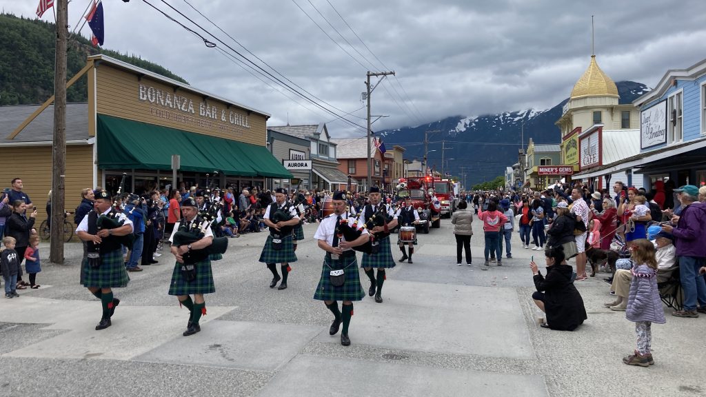 We spent six days in Skagway, Alaska. We arrived on July fourth and went to the Independence Day Parade where the participants threw candy. In the parade there was a fire truck, a bus full of dogs, bag pipers and floats in all different shapes and sizes!