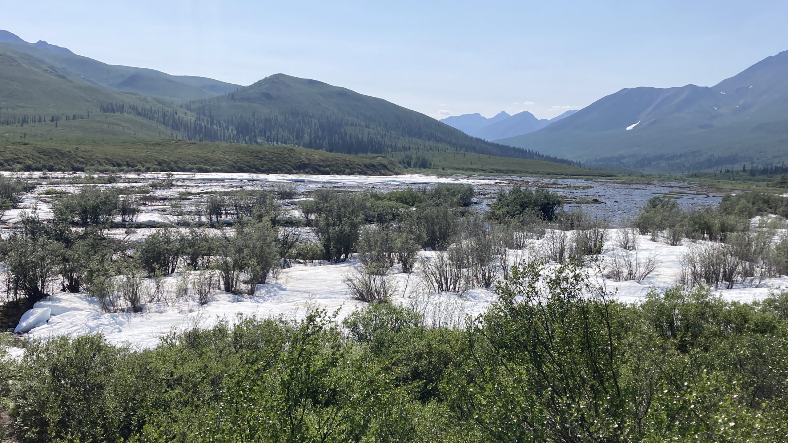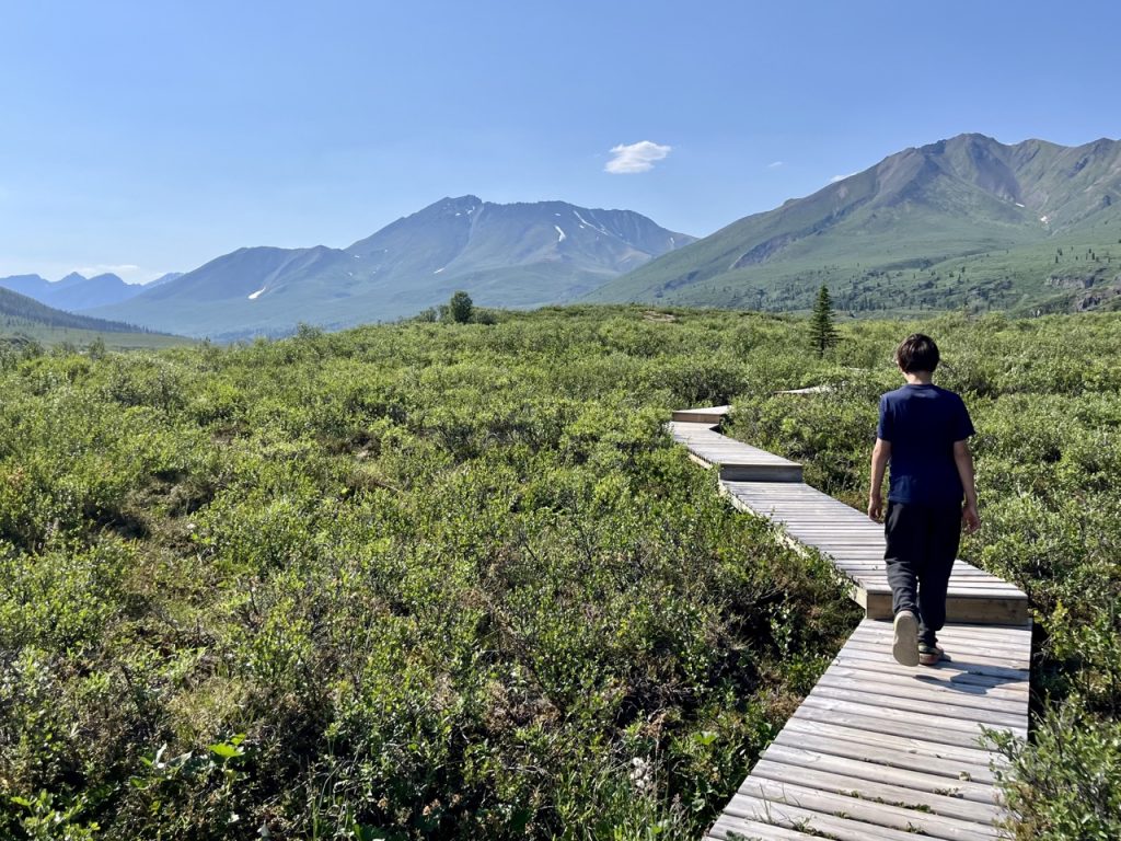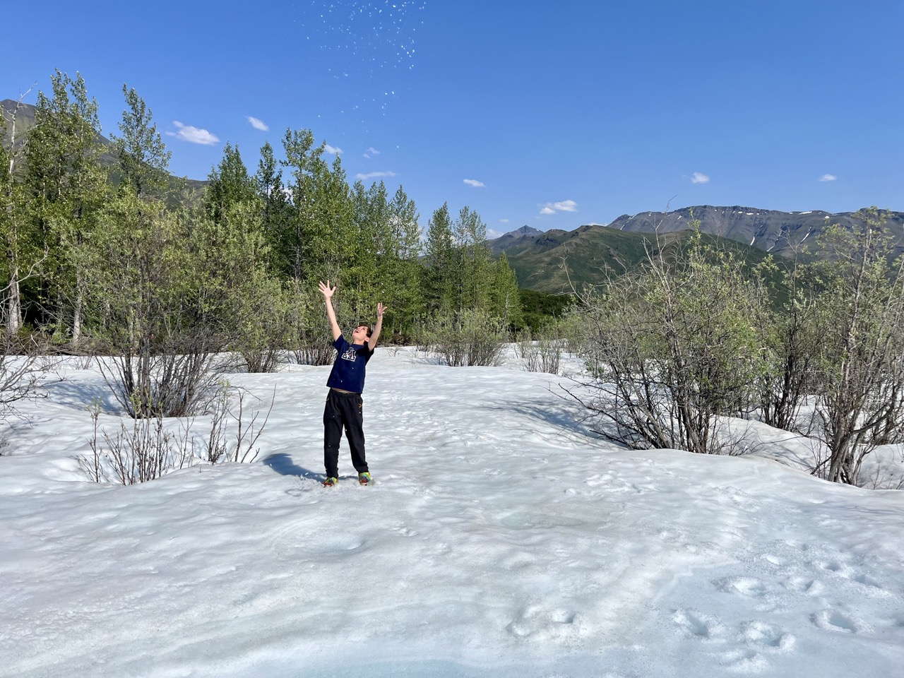 At our first stop on the Dempster Highway, on our way to the Arctic Ocean, we went on a very long and tiring hike. After a hot and long journey we finally found … snow?