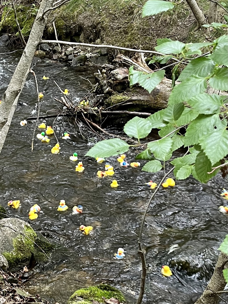 After the parade we played some old fashioned games from the 1800s like Graces and Cup-and-ball! Later in the day we went to the Rubber Duck Derby. One thousand numbered rubber ducks were released into a river. The first one to cross the finish line was the winner. If the person’s ticket was the same number as on the duck they would win. We didn’t win but we did get to keep a rubber duck and we named him Quackers.